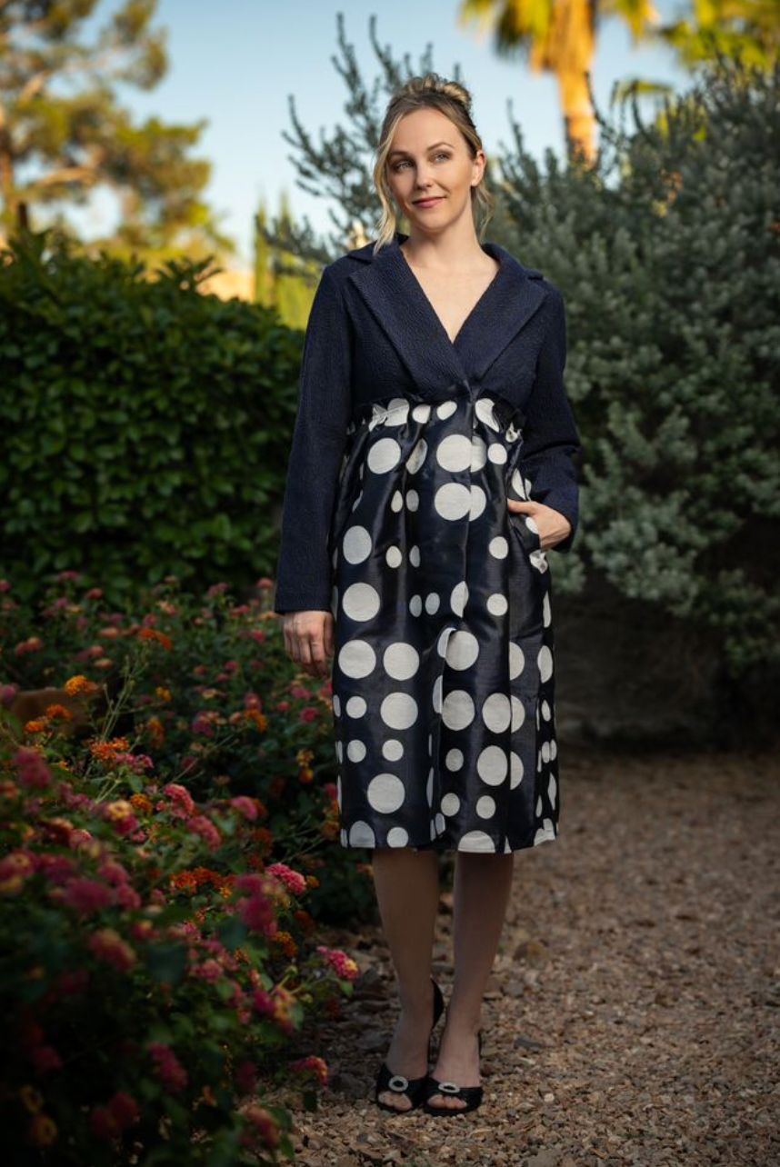 Yarn dyed jacquard matching jacket/dress in midnight blue